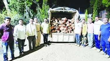 चिंचपाडा-विसरवाडी रस्त्यावर वनविभागाच्या गस्तीपथकाने वाहनातून २ लाख रुपयांचे खैरजातीचे अवैध लाकूड जप्त केले आहे. वाहनासह एकुण ४ लाख ५० हजार रुपयांचा एकुण मुद्देमाल हस्तगत करण्यात आला आहे. दरम्यान, वाहनधारक अंधाराचा फायदा घेत वाहन सोडून पळून जाण्यात यशस्वी झाला.मिळालेल्या गुप्त बातमीवरून वनविभागाचे पथक चिंचपाडा ते विसरवाडी रस्त्याने गस्त करताना विसरवाडी येथील हार्दिक पेट्रोल पंपाजवळ पिकअप वाहन (क्र.जीजे १७ युयु ४५९४) थांबवून तपासणी केली असता त्यात विनापास खैर प्रजातीचे अवैध लाकुड आढळून आले.वाहनचालक अंतराचा फायदा घेवून पसार झाला. सदर वाहन जप्त करून नंदुरबार आगार डेपो येथे जमा करण्यात आला. सदर मालाची अंदाजित किंमत २ लाख रुपये असून अंदाजित २ ते २.५ टन खैर माल आहे. वाहनाची अंदाजित २ लाख ५० हजार असा एकूण ४ लाख ५० हजार रुपयांचा मुद्देमाल जप्त करण्यात आला आहे.सदर कार्यवाही वनसंरक्षक पगार, कृष्णा भवर, विभागीय वनअधिकारी दक्षता धुळे श्रीमती कुलकर्णी, सहाय्यक वनसंरक्षक धनंजय पवार, वनक्षेत्रपाल चिंचपाडा शिवाजी रत्नपारखे, स्नेहल अवसरमल यांच्या मार्गदर्शनाखाली करण्यात आली.