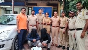 सदर कार पोलीस हवालदार बाळू सांगळे, पोलीस कॉन्स्टेबल प्रदिप आजगे यांना आढळून आली त्यांनी त्यांच्या वरिष्ठांना सदर कार बद्दल माहिती दिली असता वरिष्ठ अधिकारी याबाबतची माहिती मिळताच चांदवडचे प्रभारी पोलीस उपअधिक्षक सविता गर्जे, सहायक पोलीस निरीक्षक रवींद्र जाधव, पोलीस उपनिरीक्षक सुरेश चौधरी, पोलीस हवालदार विजय जाधव, अमोल जाधव, पोलीस नाईक चेतन बागल, दिनेश सूळ, पो.कॉन्स्टेबल विक्रम बस्ते, चंद्रकांत पवार, प्रदिप सोळंकी, विनोद लोखंडी आदींनी तातडीने घटनास्थळी जाऊन दोघा संशयीतांना ताब्यात घेतले. त्यांच्या कारच्या मागील डिक्कीत असलेला 36 हजार रुपये किमतीचा गांजा, 4 लाख 15 हजार रुपये किमतीची मारुती स्वीफ्ट कार, 6 हजार 400 रुपये रोख, 9 हजार 500 रुपये किमतीचे दोन भ्रमणध्वनी असा एकूण 4 लाख 66 हजार 900 रुपयांची मुद्देमाल जप्त केला असून संशयीत मोहम्मद आरीफ अब्दुल रहिम (43, रा. इस्लामपुरा, मालेगाव) व हुजाफा मलिक जावेद अहमद (23, मालेगाव) यांना अटक केली आहे. याप्रकरणी चांदवड पोलीस ठाण्यात सायंकाळी उशीरापर्यंत गुन्हा दाखल करण्याची प्रक्रिया सुरु होती. याबाबत अधिक तपास पोलीस उपनिरीक्षक भानुदास नऱ्हे करीत आहेत.