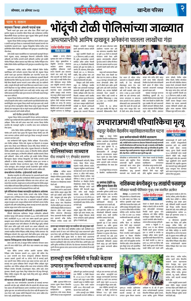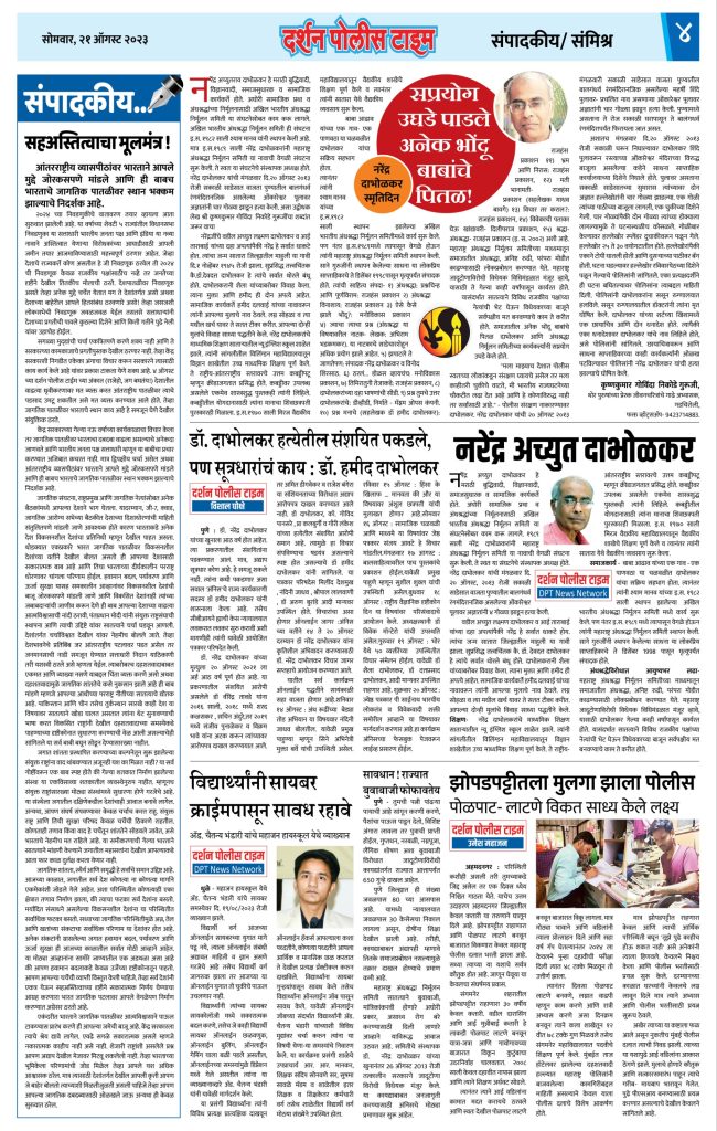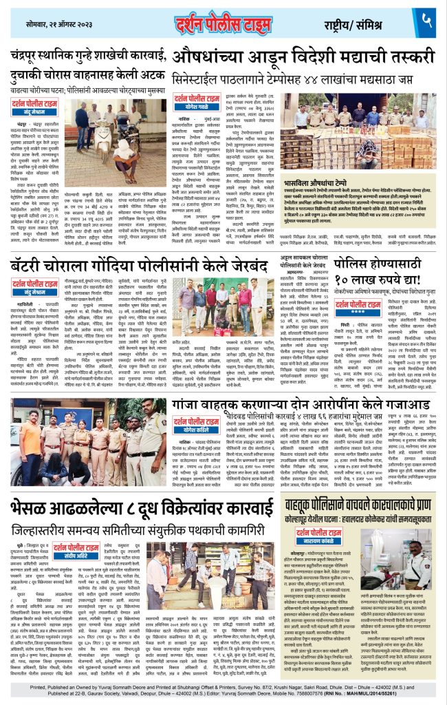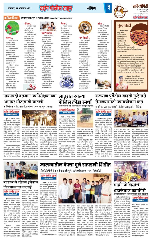 दर्शन पोलीस टाइम दि. 21/08/2023 अंक आपल्या सेवेत 🗞️✍️🙏