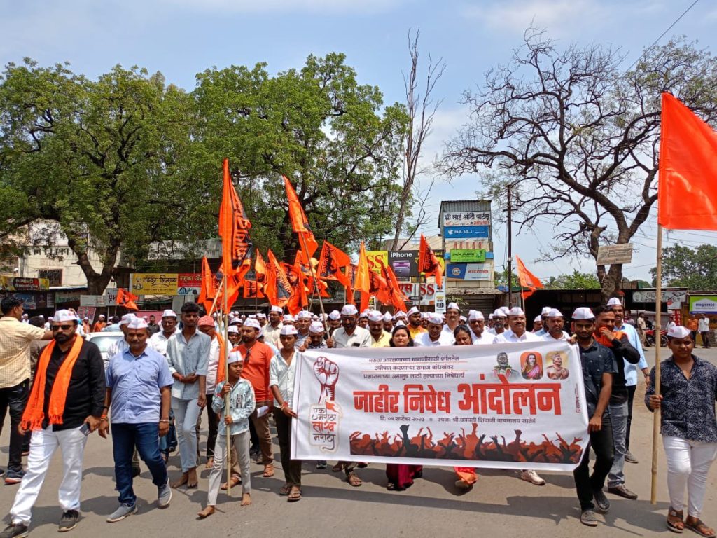 साक्री: मराठा आरक्षणाच्या मागणीसाठी जालना जिल्ह्यातील अंतरवाली सराटी येथे आंदोलन करणाऱ्या गावकऱ्यांवर प्रशासनाकडून लाठीमार केल्याचे पडसाद राज्यभर उमटताना पाहायला मिळत आहे. याच पार्श्वभूमीवर धुळे जिल्ह्यातील साक्री तालुक्यात मंगळवारी ५ सप्टेंबर रोजी बंदची हाक देण्यात आली होती. सकाळी ११ वाजता साक्री शहरातील छत्रपती शिवाजी महाराज वाचनालयापासून मोर्चाला सुरूवात करून पुढे गोल्डी हॉटेल पॉईंट, बस स्टँड मार्गे बाजारपेठेतून काढून तहसील कार्यालयावर निषेध मोर्चा काढण्यात आला.